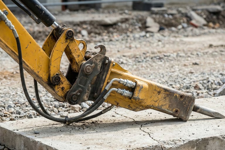 The Breaker: Need to remove an old concrete patio before digging the new footings? Pop on the hydraulic hammer, smash the concrete, switch back to the bucket, and load it out. One machine, two jobs.
